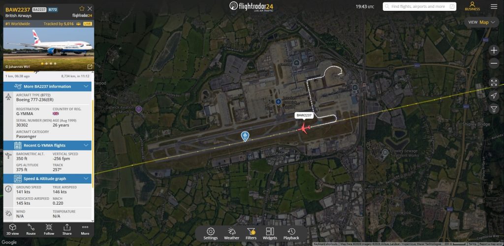 BA2237 has commenced it’s descent also back into London Gatwick.
